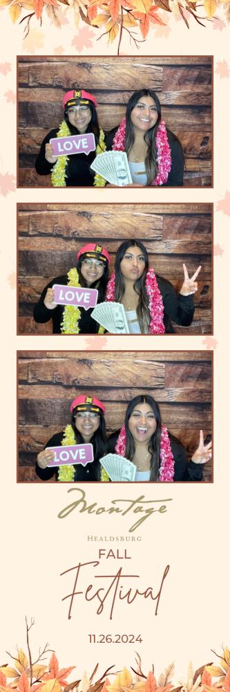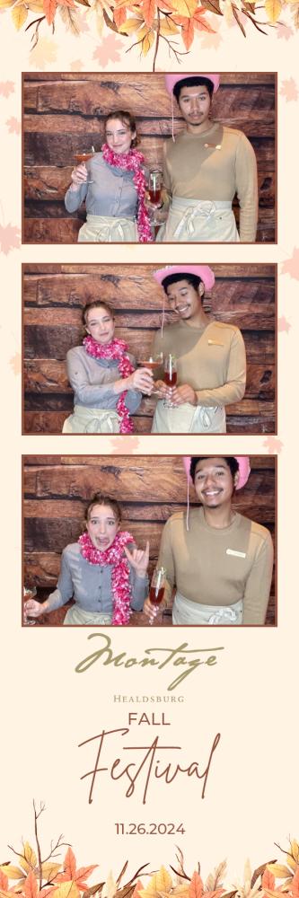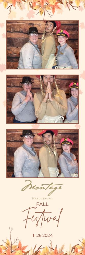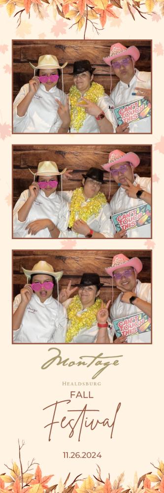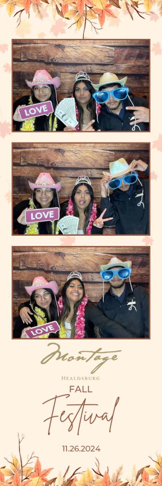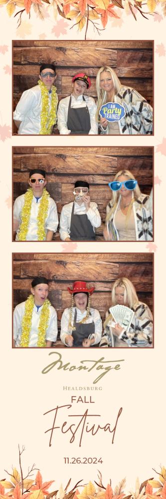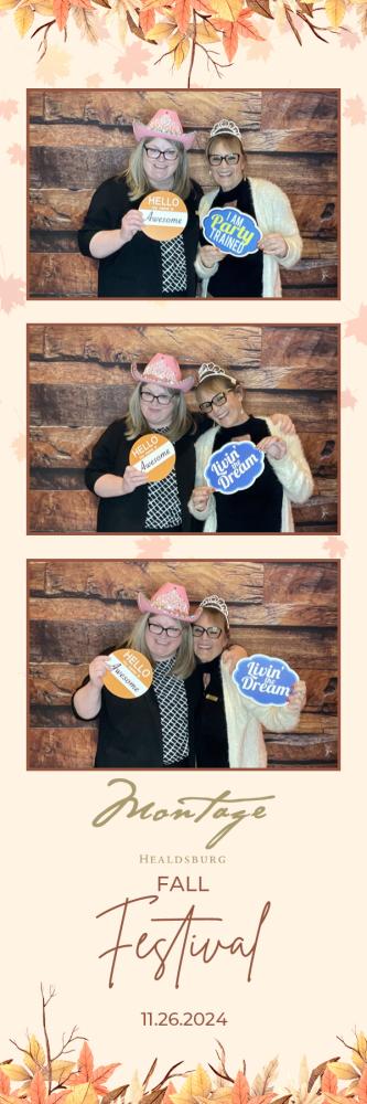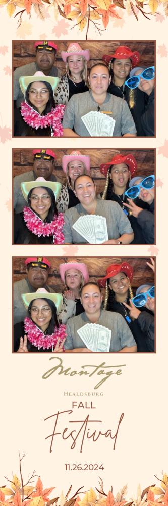 Thank you so much to everyone who attended the photobooth for Montage Event at Montage Healdsburg on Tuesday 26th Nov 2024. We hope you all had a great time in the photobooth, and enjoy browsing through your gallery photos below. Regards, Ashley